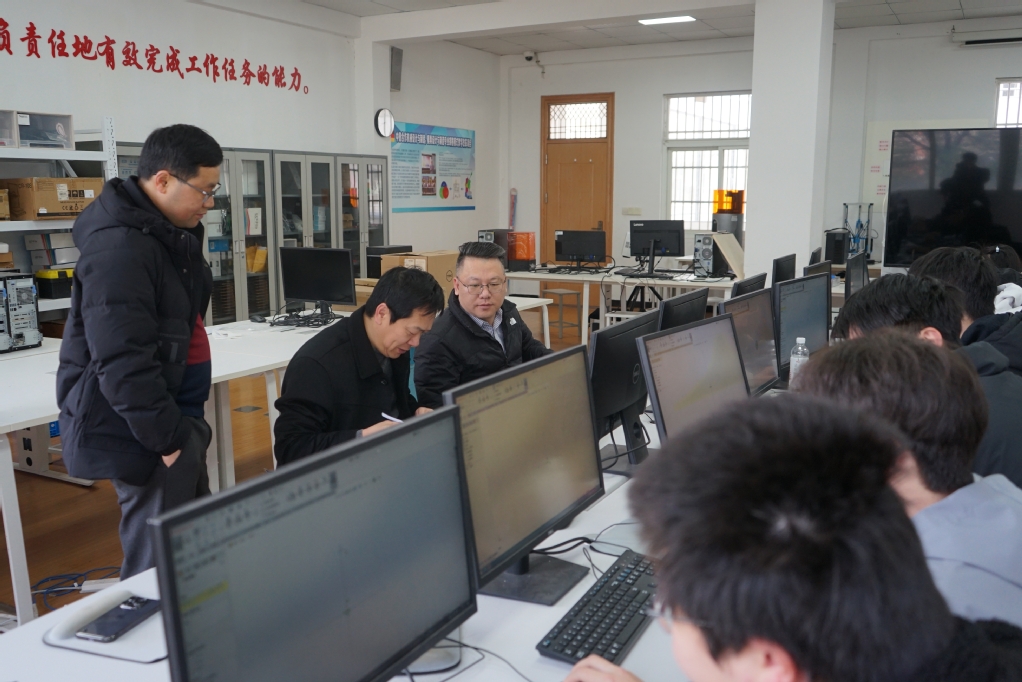 校领导一行前往了学校各个教学场所,实地察看智慧教室的运行效能、物联网设施的互联状态以及绿色校园建设的落实情况。在听课环节,校领导仔细聆听教师们如何在专业知识传授中巧妙融入思想政治教育元素,引导学生树立正确的价值观和人生观;对于创新教学方法和手段的应用,也进行了深入观察和思考,鼓励教师们积极探索适应新时代学生特点的教学模式,提高课堂教学效果。校领导指出,课程教学改革要紧密结合“十五五”规划目标,进一步优化课程体系,加强学科交叉融合,培养学生的创新思维、实践能力和解决实际问题的能力。